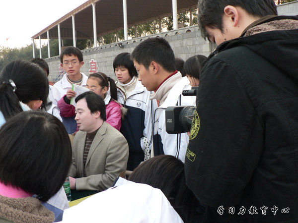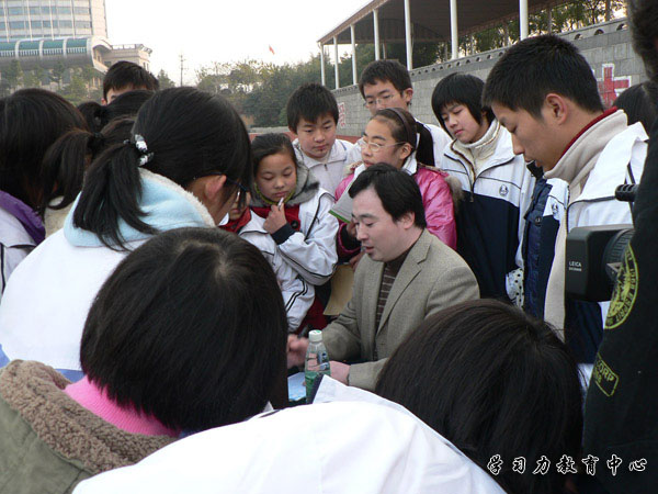 课后同学们围着余建祥老师签名留念,谁说我们的学生只会追星,对学习我们同样认真
